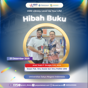 Biro Pusat Pengetahuan dan Perpustakaan Universitas Satya Negara Indonesia telah menerima hibah buku dari Bapak Ariel Juan F. Sinaga, S.H., M.H., selaku Dosen Tetap Fakultas Ilmu Sosial dan Ilmu Politik, Universitas Satya Negara Indonesia.